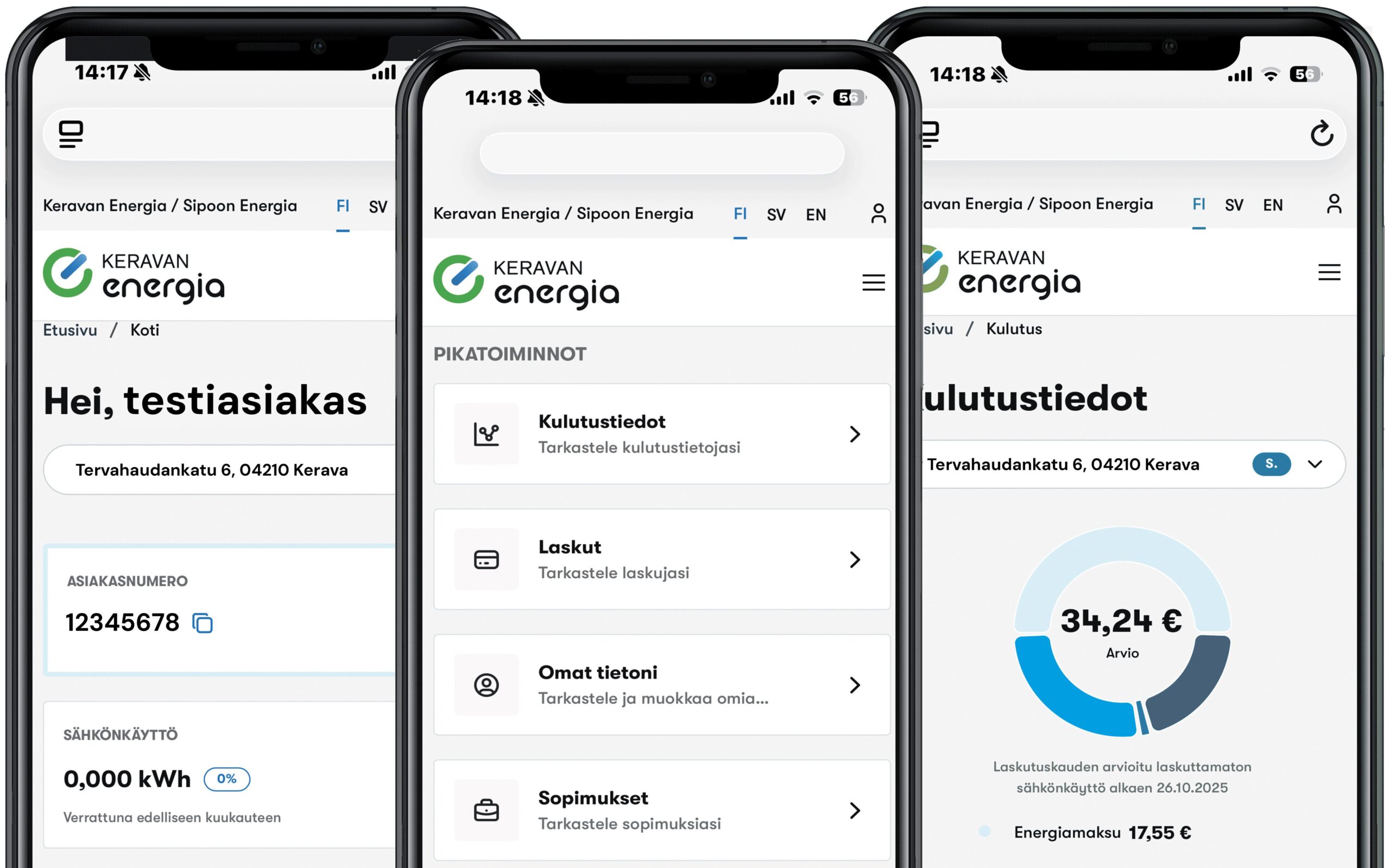 Keravan Energia -sovelluksen ominaisuuksia ovat mm.