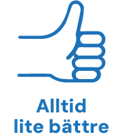 Vi strävar ständigt efter att förbättra vår prestation och tror starkt på kontinuerlig utveckling. Vi söker nya lösningar och vågar pröva.